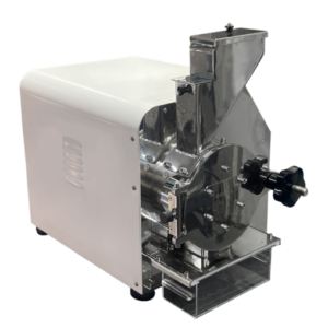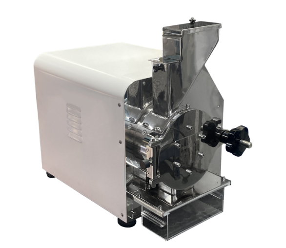 Bagian depan dan hopper terbuat dari baja tahan karat AISI 304 dengan permukaan mirror polished. Di bagian dalam, terdapat tiga palu dari baja tahan aus AISI 410. Alat ini dilengkapi dengan saringan (screen) yang mudah diganti, dengan ukuran lubang standar antara Ø 0,5 hingga 10 mm untuk model pemotong dan tumbukan.