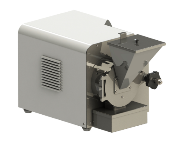 Bagian depan dan hopper terbuat dari baja tahan karat AISI 304 dengan permukaan mirror polished. Di bagian dalam, terdapat tiga palu dari baja tahan aus AISI 410. Alat ini dilengkapi dengan saringan (screen) yang mudah diganti, dengan ukuran lubang standar antara Ø 0,5 hingga 10 mm untuk model pemotong dan tumbukan.