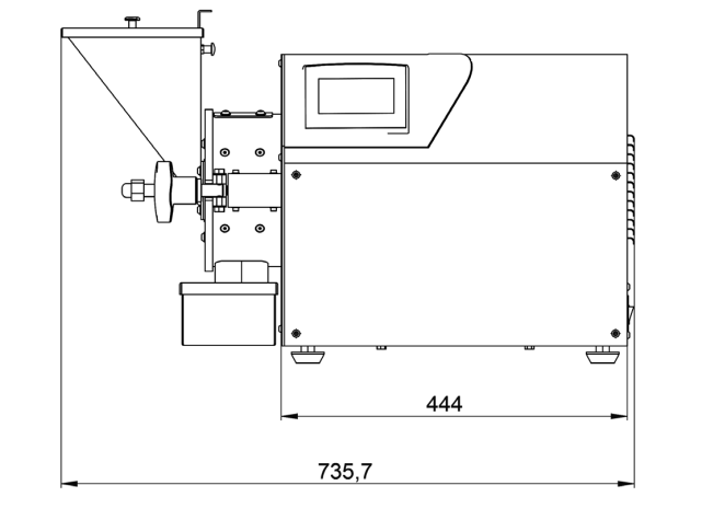 Pengisian bahan dilakukan melalui hopper (corong) di bagian atas dan dapat diatur secara manual menggunakan alat pemotong (chopper). Pintu alat dilengkapi sistem penguncian cepat serta sensor pengaman (safety micro-sensor) yang secara otomatis menghentikan rotasi ketika pintu dibuka.