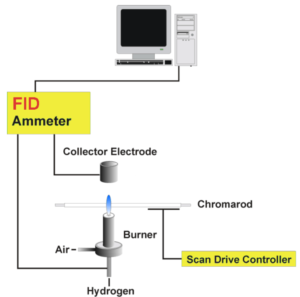 Komponen yang terpisah dideteksi oleh detektor ionisasi nyala (FID), kemudian diidentifikasi dan dikuantifikasi. Iatroscan MK7s memungkinkan untuk memisahkan, mengidentifikasi, dan mengukur sampel berukuran beberapa nanogram.
