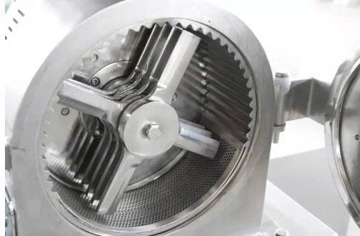 Bahan baku masuk ke ruang penggilingan melalui corong pemasukan, dihantam oleh pemotong berputar berkecepatan tinggi, dilempar ke pelapis tetap, kemudian dipantulkan dan digunting.